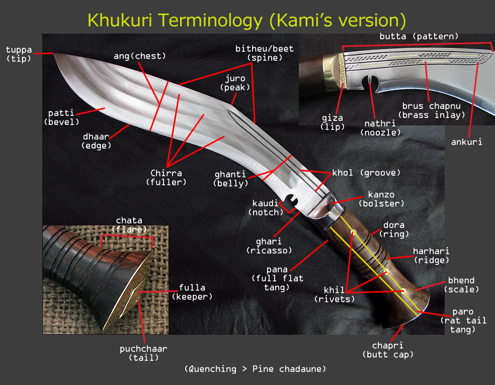 V čepeli khukuri můžou být výbrusy (chirra) pro odlehčení celkové váhy čepele a ponechání základních vlastností a tuhosti khukuri.