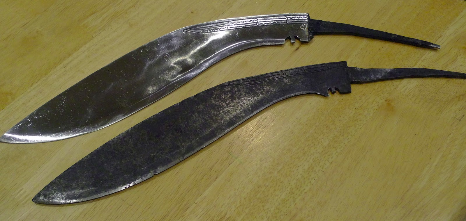 Raw khukuri je nejprve kovářem obroušena a pak pískována. Poté se