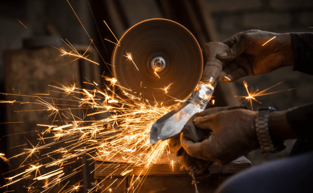 Raw khukuri vyrobená kovářem je nejprve obroušena a poté pískována. Poté